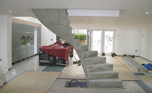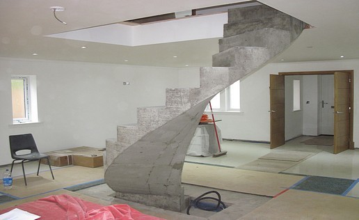 The soffits and string edges had a detailed plasterboard/plaster finish.