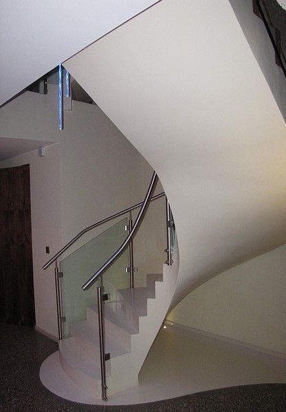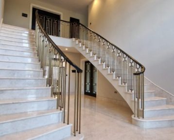 The balustrade/hand-rail can be finished with wood, metal, glass and solid concrete.