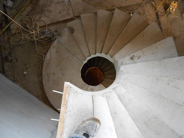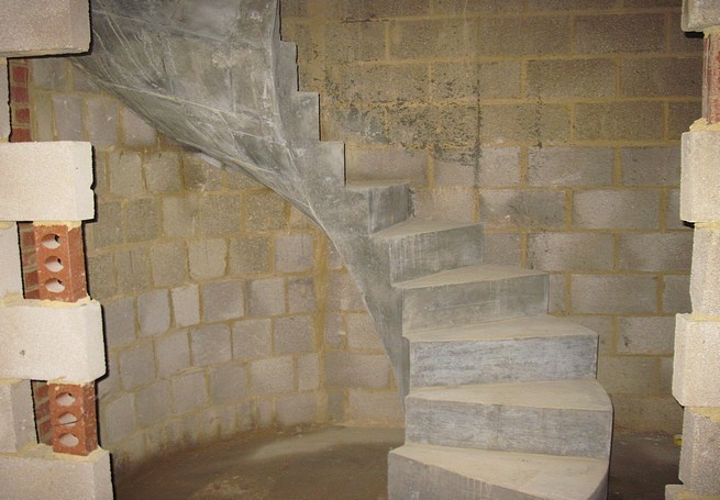 Spiral concrete stairs are